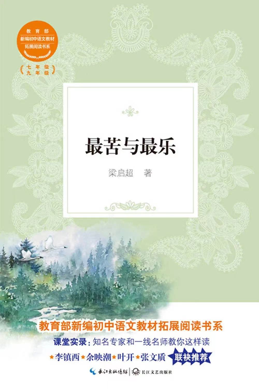 【内容简介】《*苦与*乐》是梁启超文学作品精华选集,内容涉及时评政论、游记家书、学术杂谈、人物传记,比较全面地反映了梁启超人生脉络和作品风格。书中收录其具有代表性的名篇《*苦与*乐》《敬业与乐业》《谭嗣同传》《趣味教育与教育趣味》等,既能帮助读者全面了解梁启超的人生和思想,又有助于培养读者积极进取的人生观。其中,《*苦与*乐》《敬业与乐业》两篇被收入初中语文教材。